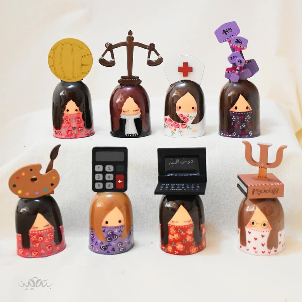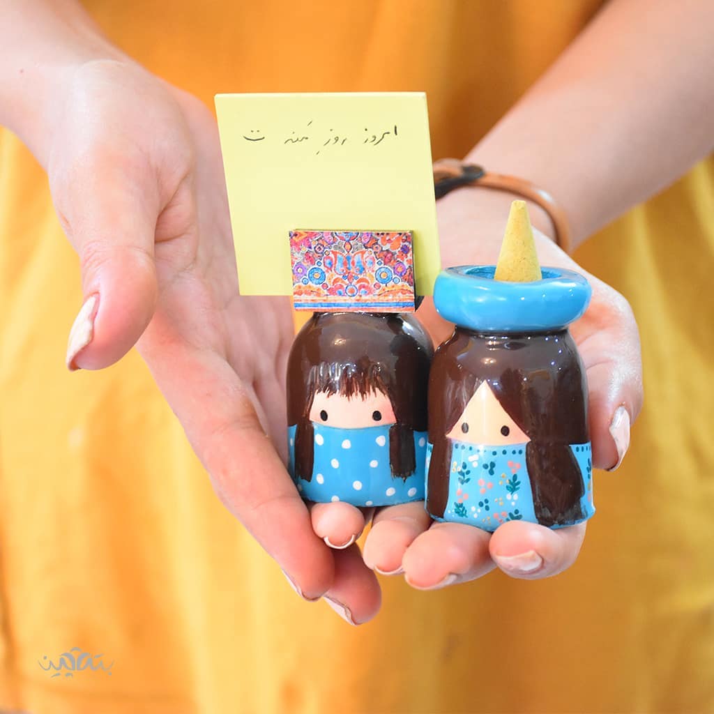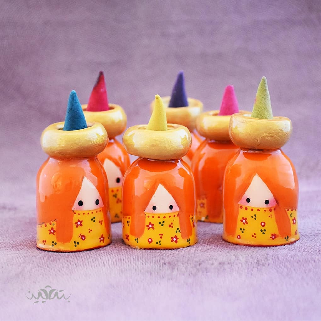 This collection is called "Botebon Girls". The character design was created first, then each piece is customized in color and details according to the customer’s preferences. These figurines are note holders for desktops, mirror holders, candle holders, or simply as charming decor.