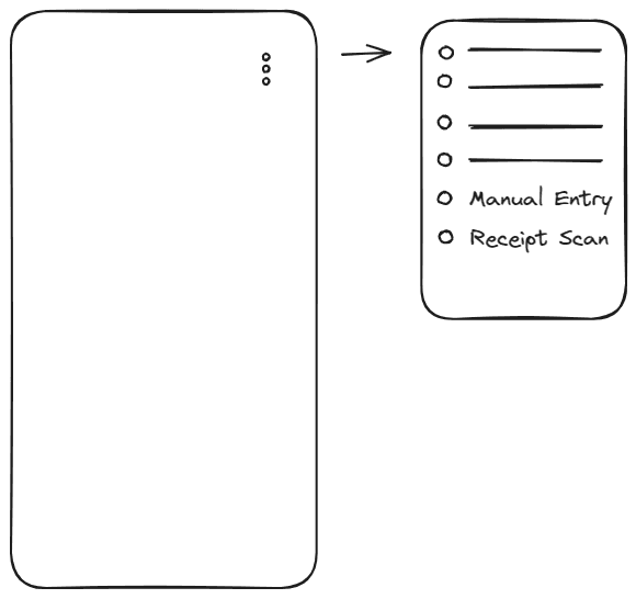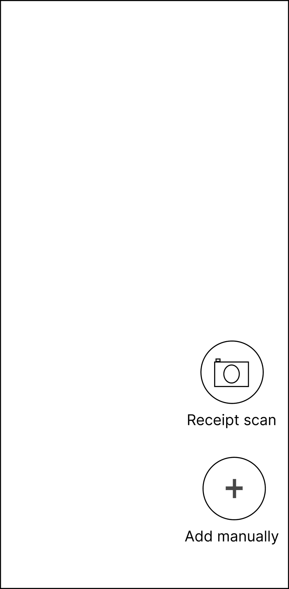 The receipt scan button and manual entry button are conceptually equivalent within the same category but are located in different places